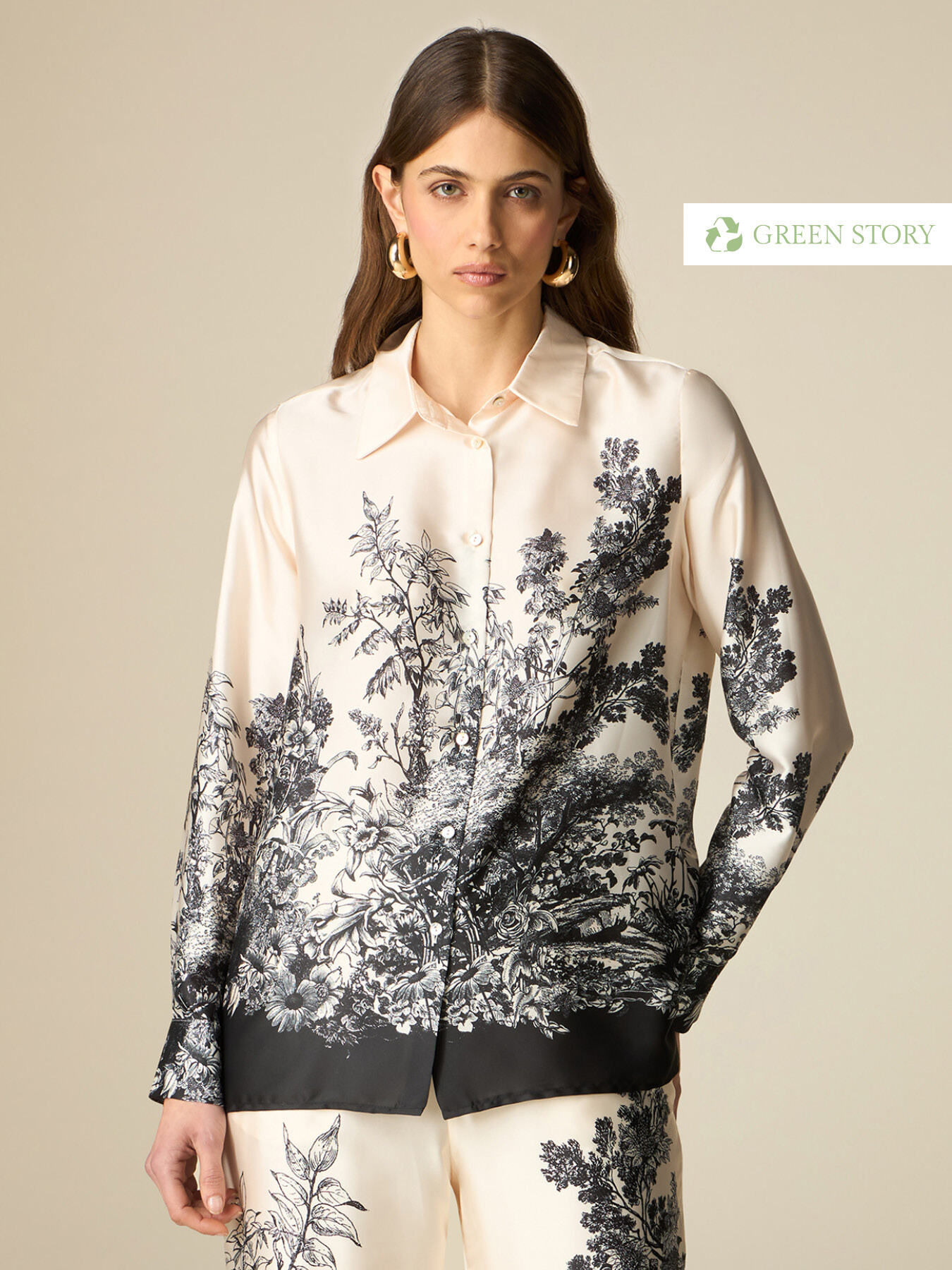 - Camisa de raso vaporoso con estampado ramage dégradé