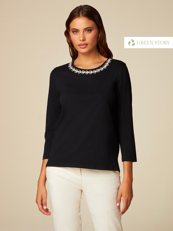 Blusa in raso con dettaglio gioiello Blusa in raso con dettaglio gioiello