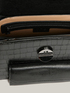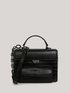 Borsa rigida in similpelle con parti effetto cocco e altre effetto rettile; design retro'; tracolla con parti a catena.; Altezza 17 cm, larghezza 22 cm, ampiezza 8 cm.