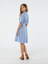 Vestito chemisier in popeline di cotone stretch lavorato a righe; maniche corte; inserti in pizzo sulla parte alta; fusciacca da stringere in vita e chiusura a bottoni metallici.