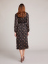 Vestito midi in tessuto a fantasia floreale; ampie maniche a sbuffo; scollatura a V e fusciacca da annodare in vita.